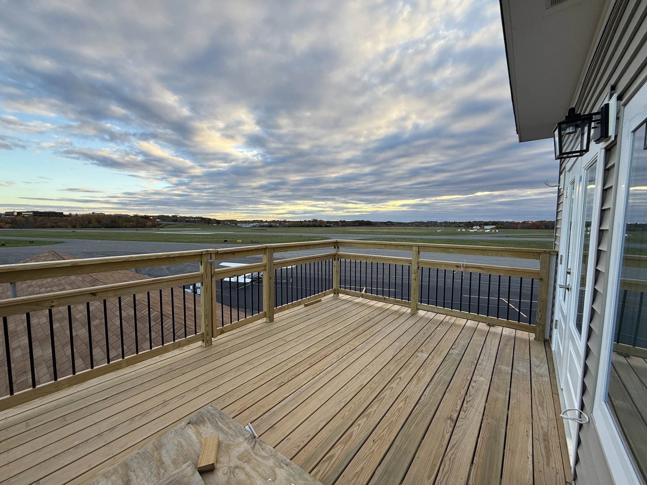 This level really speaks for itself. There’s ample room for a few desks with plenty of space to spread out, and windows on every wall. Walk through the French doors onto the brand-new private deck overlooking the airport and enjoy stunning views of the sunrise and sunset. You’ll be spending more time than ever at your incredibly unique office!